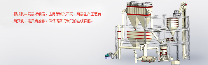 粉磨后的物料經(jīng)選粉機進行分級,不合格的粉子被選粉機分級后返回主機重新粉磨。